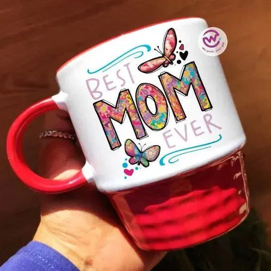 المنتج الموصوف هو كوب مخطط ملون من شركة WE PRINT, YOUR GIFT. يحتوي هذا الكوب على عدة ميزات مميزة: