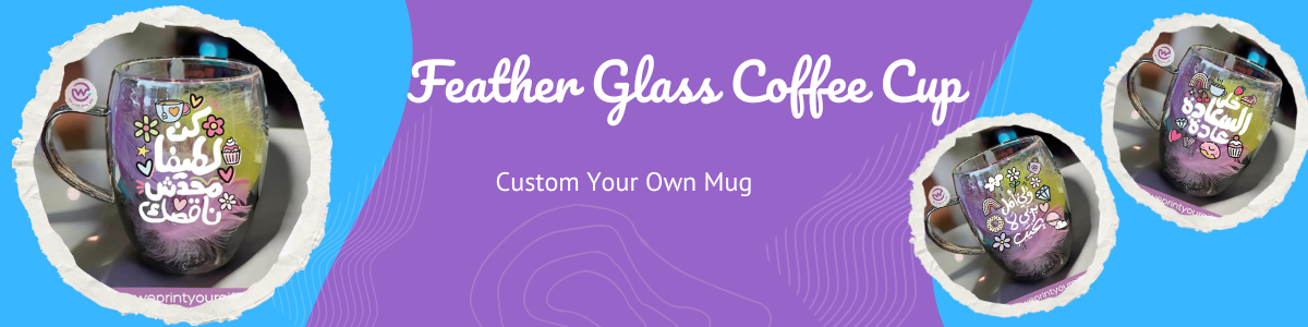 Double Wall Feather Glass Coffee Cup -Arabic Names - WE PRINTDouble Wall Feather Glass Coffee Cup -Arabic Names - WE PRINT