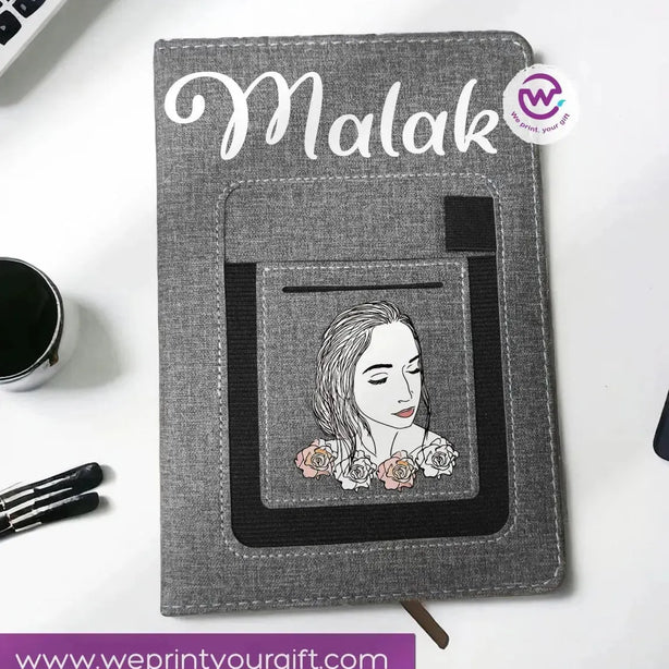 The custom notebook comes with a holder for a sticky note and a pen. This makes it easy for you to keep your pen and notes close by whenever you need them.