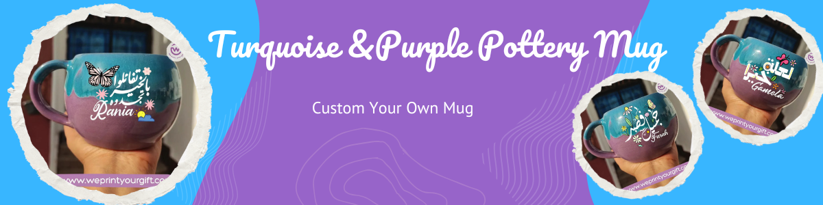 Turquoise &Purple pottery mug- Arabic Names - WE PRINTTurquoise &Purple pottery mug- Arabic Names - WE PRINT